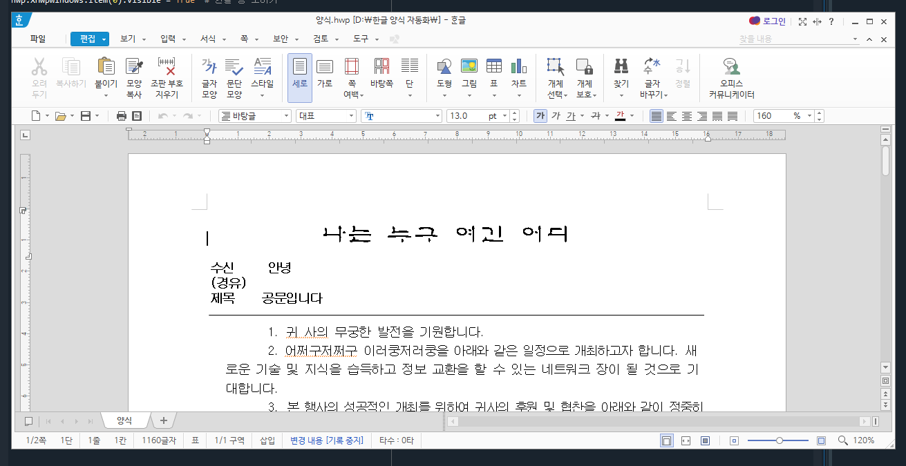 3번 과정에서는 한글 양식에 집어넣을 데이터가 몇 종류인지 받아오는 과정이 추가되면 좋을 것 같고,