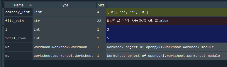 이제 이 목록에서 확장자에 따라 기존에 있던 hwp_file과 xl_file 변수에 저장해보도록 하겠습니다.